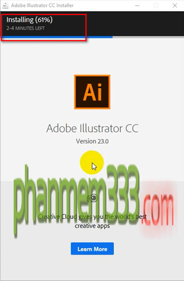Chờ phần mềm Adobe Illustrator CC 2019 cài đặt trong ít phút.
