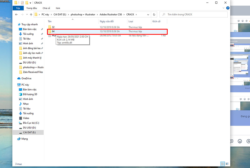 Vào thư mục CRACK/64 copy file Amtlib.dll paste vào ổ C:\Program Files\ Adobe \ Adobe IIIustrator CS6(64Bit) \ Support Files \ Contents \ Windows.