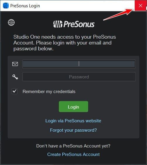 Mở Studio One 7 ở màn hình, đóng bảng khởi động.