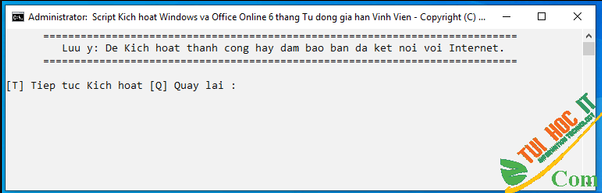 Bước 5 : chờ đợi khi kích hoạt xong thì nhấn phím tùy ý để trình thoát ra