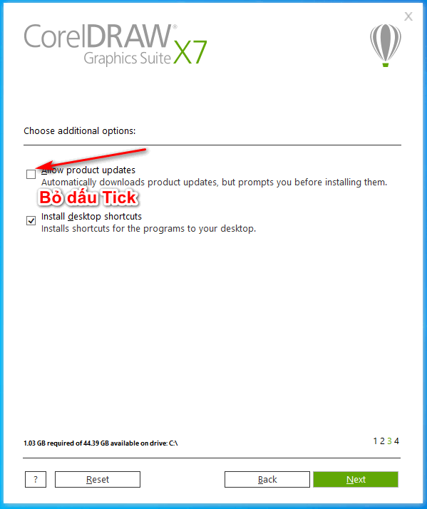 Bước 8: Bỏ dấu tick “Allow product updates” và nhấn Next