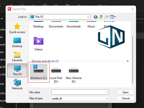Bạn tìm tới file amtlib.dll, rồi nhấn Open.