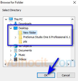 Chọn Desktop >  chọn thư mục vừa tạo lúc nãy và click OK